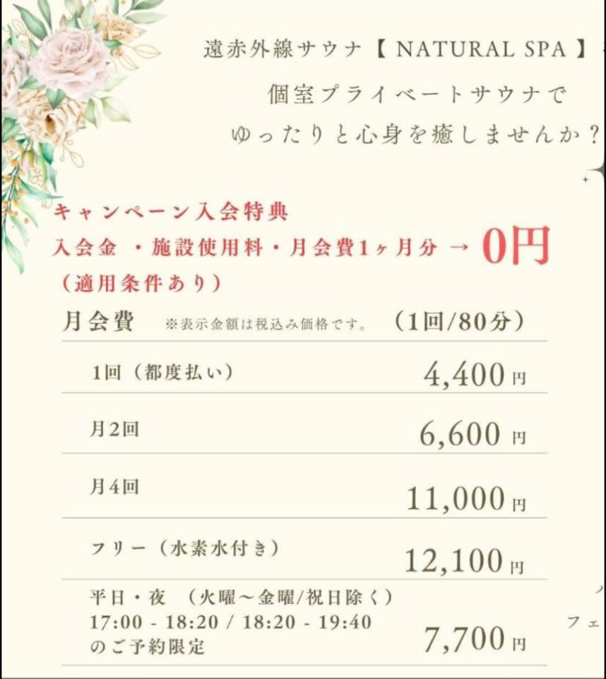 入会金・施設使用料・月会費1ヶ月分 → 0円